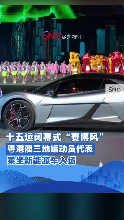 十五运闭幕式“赛博风”粤港澳三地运动员代表乘坐新能源车入场#活力大湾区相约十五运#
