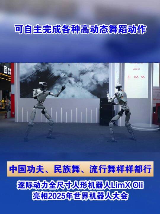 【现场表演中国功夫 逐际动力全尺寸机器人亮相世界机器人大会】在2025世界机器人大会上,LimX Oli在WRC现场完成胜利之舞、民族舞等高动态舞蹈动作,还表演了一段中国功夫。舞蹈不仅仅是一种丰富的表现形式,更是机器人全身运动控制的试金石。(素材来源:逐际动力)