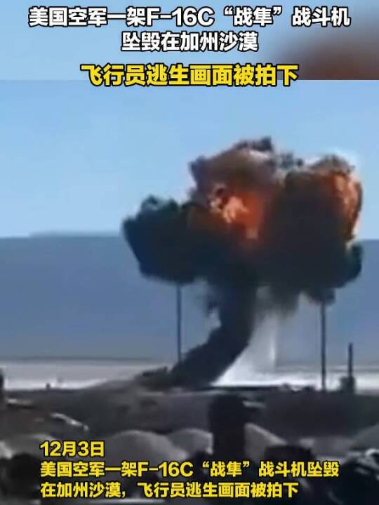 美国空军一架F-16C“战隼”战斗机坠毁在加州沙漠 飞行员逃生画面被拍下(新京报)