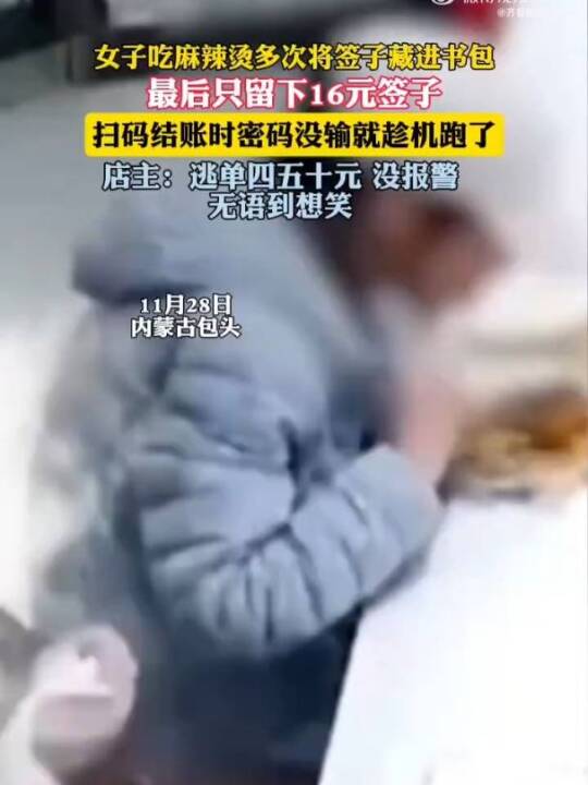 女子吃麻辣烫把签子藏书包里逃单(齐鲁晚报)
