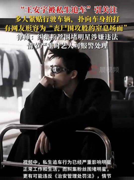 “王安宇被私生追车”引关注,多人紧贴行驶车辆,扑向车身拍打,律师:纠集粉丝围堵明星涉嫌违法,情节严重时艺人可报警处理(潇湘晨报、津云新闻)
