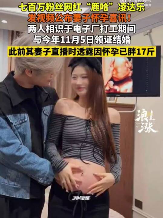 12月2日晚,网红凌达乐发与妻子做孕检视频 公布妻子怀孕喜讯配文:“约了一个小朋友明年见呀~(来源:浪涨新闻、中国蓝新闻)