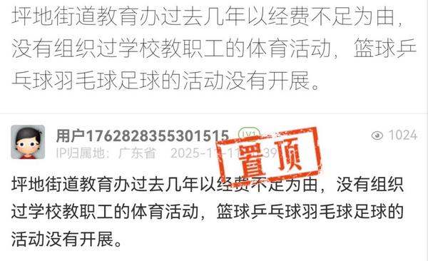 深圳一地被指因经费不足,近几年未组织体育活动,官方回应