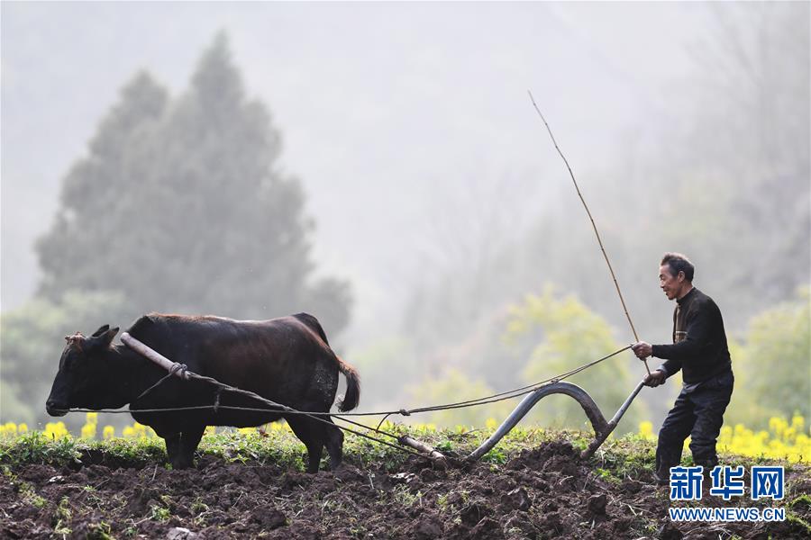 3月14日,重庆市云阳县外郎乡大花村村民在田间耕作。连日来,重庆各地春暖花开,云阳县群众抓紧农时春耕春管,田间地头一派繁忙景象。新华社记者王全超摄