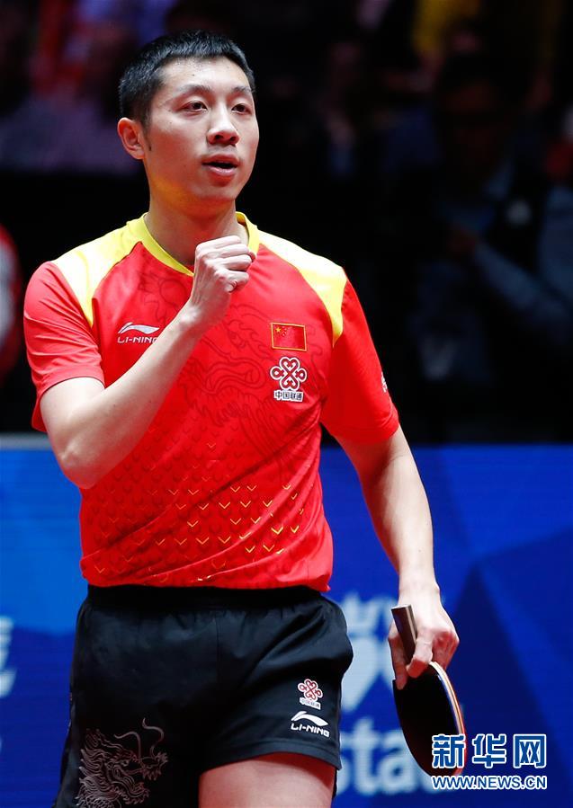5月6日,许昕在比赛后庆祝。许昕以3比1战胜德国队选手弗兰齐斯卡。新华社记者叶平凡摄