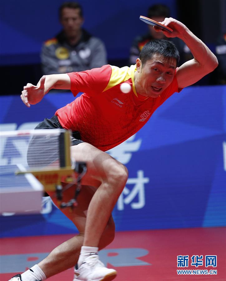 5月6日,许昕在比赛中发球。他以3比1战胜德国队选手弗兰齐斯卡。新华社记者叶平凡摄