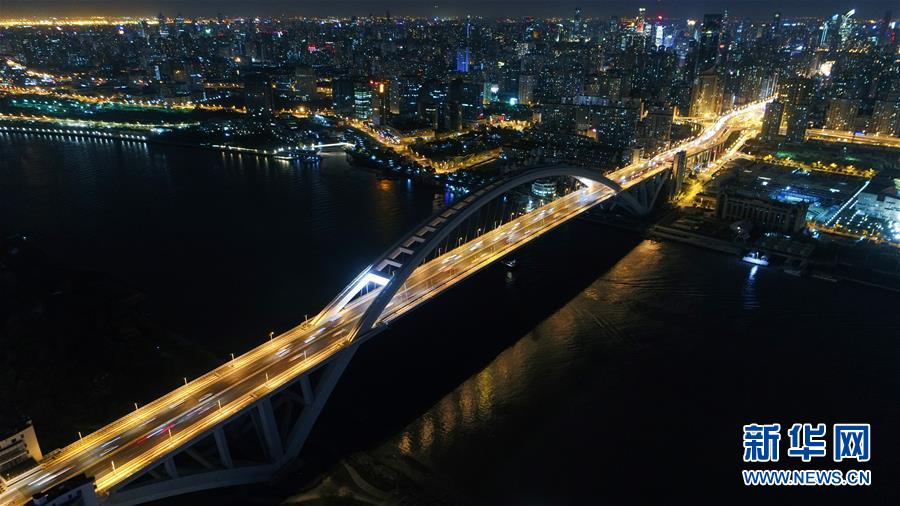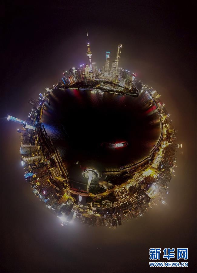 这是2017年4月15日无人机拍摄的浦江两岸夜景。