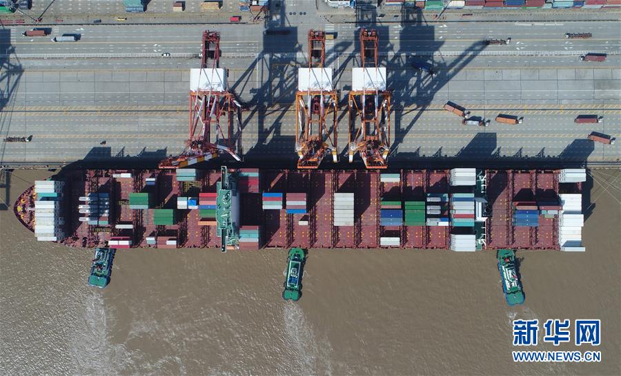 这是2017年4月23日无人机拍摄的洋山港集装箱码头。