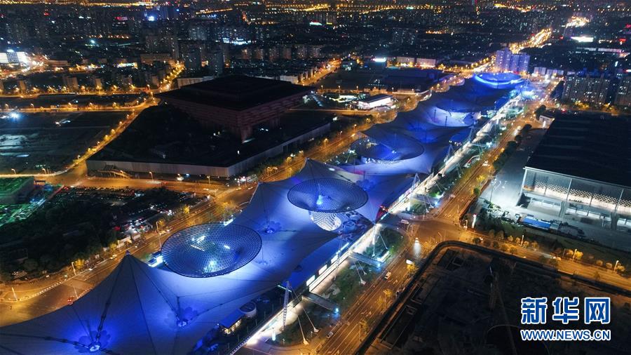 这是2017年4月14日无人机拍摄的中华艺术宫夜景。