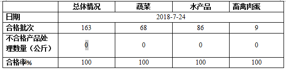 7月24日抽检总体情况如下: