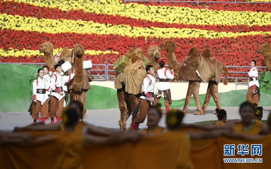 9月20日,宁夏回族自治区成立60周年庆祝大会在银川贺兰山体育场隆重举行。这是庆祝大会上的群众文艺表演。 新华社记者 王鹏 摄