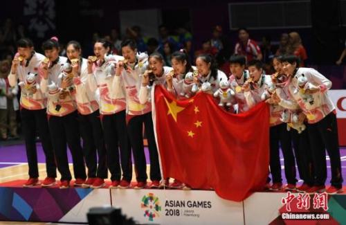 资料图:雅加达亚运会上,篮协主席姚明对女篮姑娘们的表现十分满意。中新社记者 王东明 摄