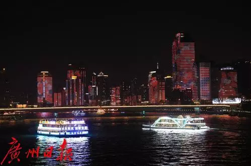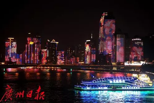 珠江沿岸高楼群亮起的流动夜光画卷,