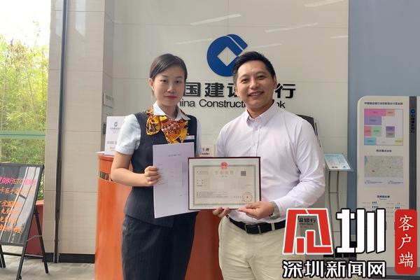 当天,顺利领到营业执照并完成开户的林先生开心地与建设银行前海分行工作人员合影。