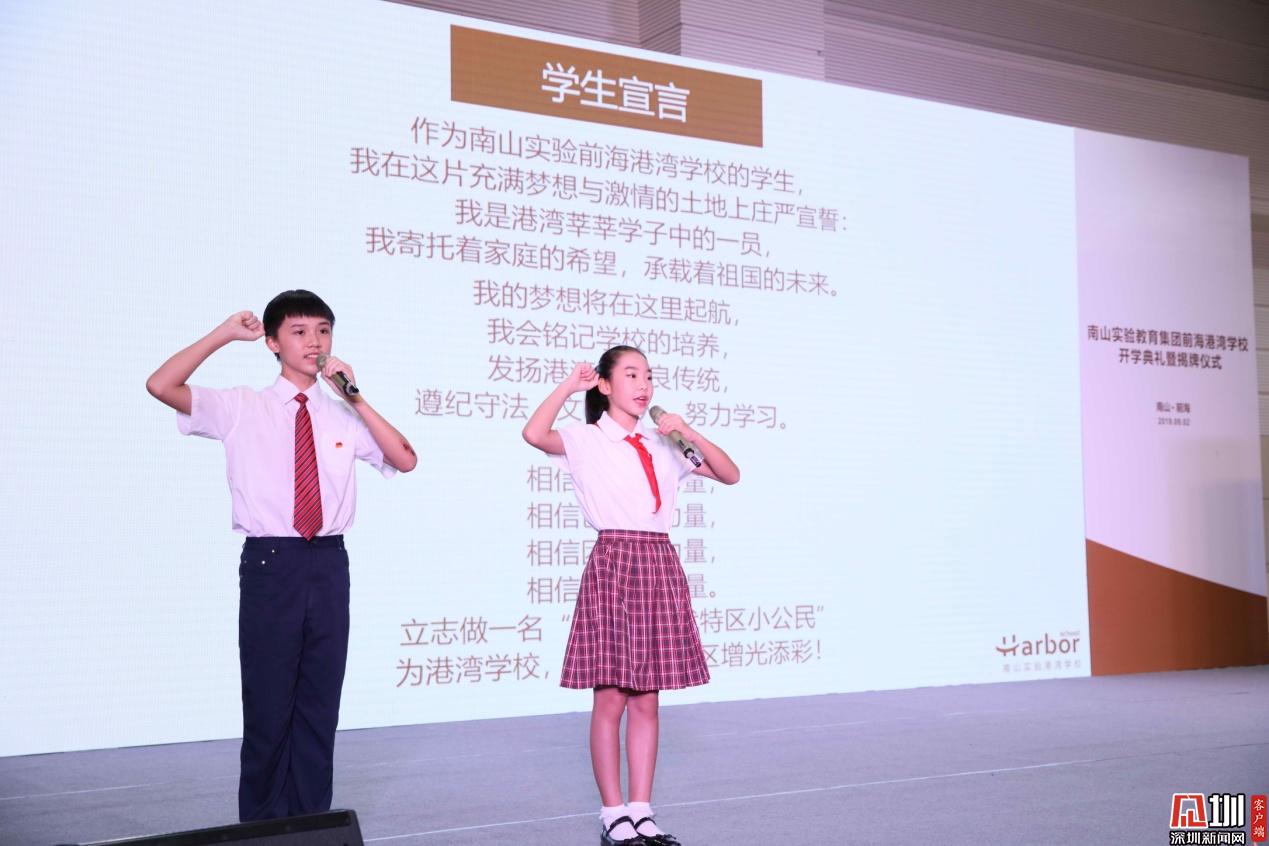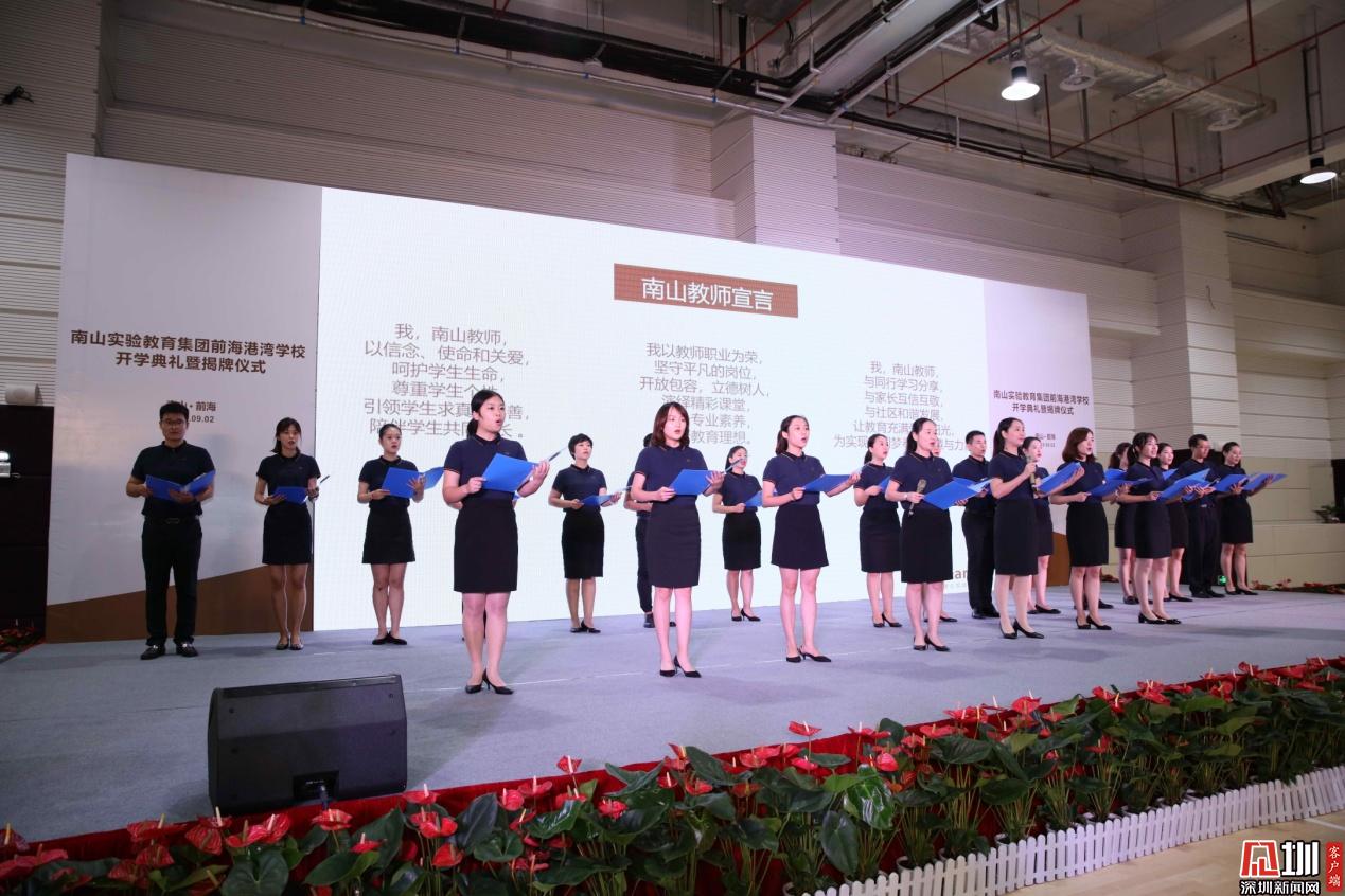 教师代表和学生代表先后宣读 《南山教师宣言》《港湾学生宣言》。当会场响起老师们“让教育充满爱的阳光,为实现中国梦奉献智慧与力量”,响起港湾学子“立志做一名有根的现代特区小公民”的铿锵誓言,全场掌声雷动。