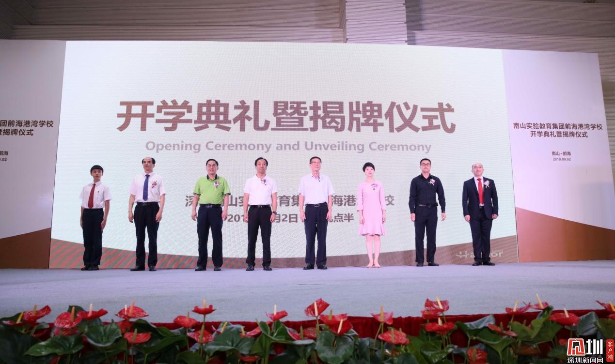 深圳新闻网讯(见圳客户端、深圳新闻网记者 徐哲康)9月2号上午九点半,前海自贸区第一所九年一贯制公办学校----南山实验教育集团前海港湾学校,首届开学典礼暨揭牌仪式在学校室内体育馆举行。南山区政协主席陈军,区政协副主席、教育局局长刘根平,区教育工委书记马颖丽,以及市区两级人大代表、政协委员,兄弟学校校长,社会各界人士近200人出席大会。
