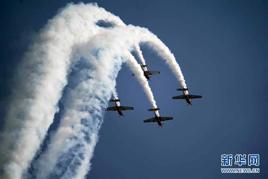 10月11日,英国环球之星表演队在飞行大会上进行飞行表演。