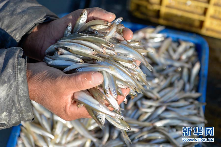 10月12日,新疆博湖县的渔民展示捕捞的池沼公鱼。 金秋十月,新疆博斯腾湖池沼公鱼迎来大丰收。截至目前,捕捞量超过1100吨,预计全年产量达1400吨。 博斯腾湖是我国最大的内陆淡水湖,也是新疆最大的渔业生产基地。池沼公鱼连续多年出口日本、韩国等国家。 新华社记者 丁磊 摄