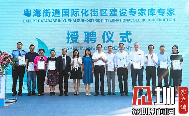 活动现场,还举行了粤海街道专家库授聘仪式。由市、区领导为深圳大学外国语学院院长张晓红、深圳大学国际交流学院书记黄雪峰、瑞声科技高级副总裁David Plekenpol等十余名专家教授颁发聘书,聘请为粤海街道国际化街区建设专家顾问。