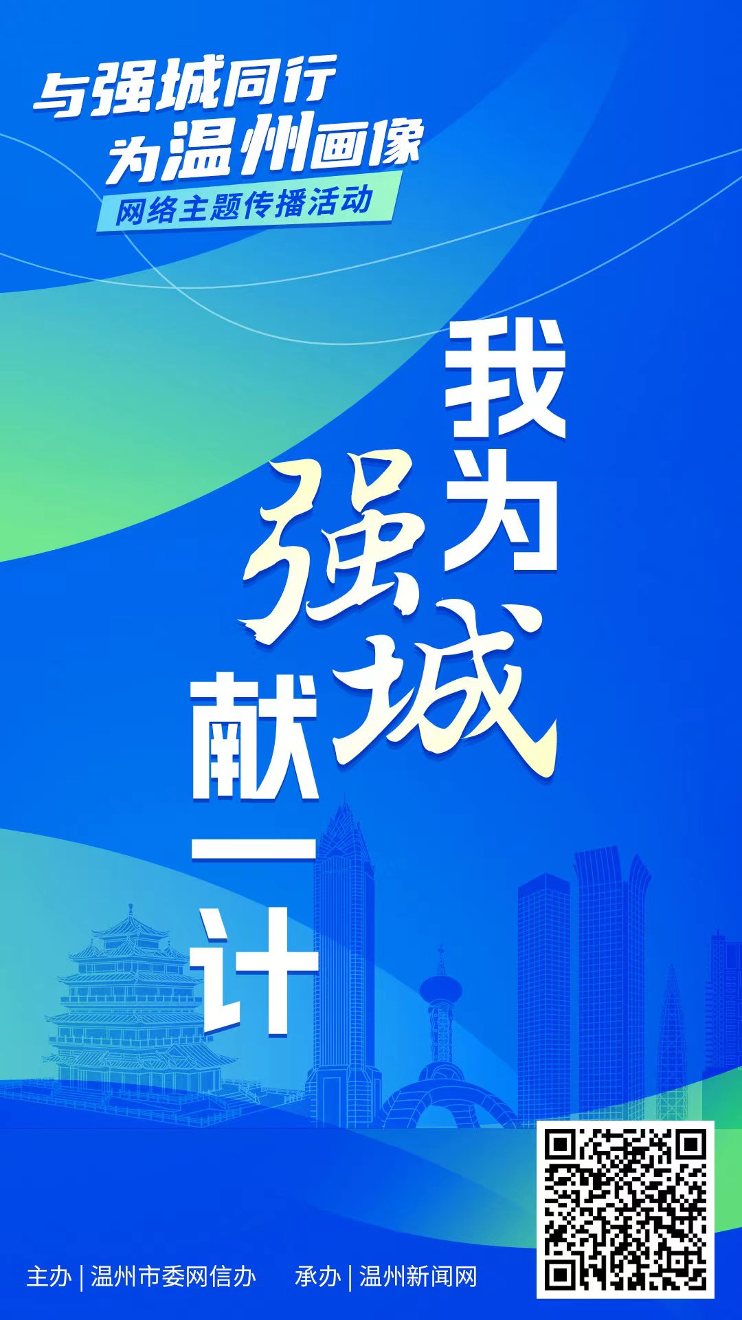 “与强城同行,为温州画像”网络主题传播活动正式启动后,网络互动专题也同步上线了。“建议延长轨道交通服务时间,让动车南站的轨道交通运营时间跟最后一班高铁动车匹配。”“为促进职业教育区域融合发展,建议加强政策引导与区域协调,优化资源配置,推动产教融合与校企合作,提升师资队伍素质,加强质量评价与监测,并拓宽国际交流与合作,共同提升职业教育质量,实现区域经济协同发展。”互动专题发布后,后台收到不少网友的建议,既有从细微处提升城市服务品质的建言,也有着眼城市发展的建议。今后,广大网友可扫码登录该平台,围绕温州城市文化、城市功能、城市品质、城市循环、城市经济等,为“强城行动”建言献策。