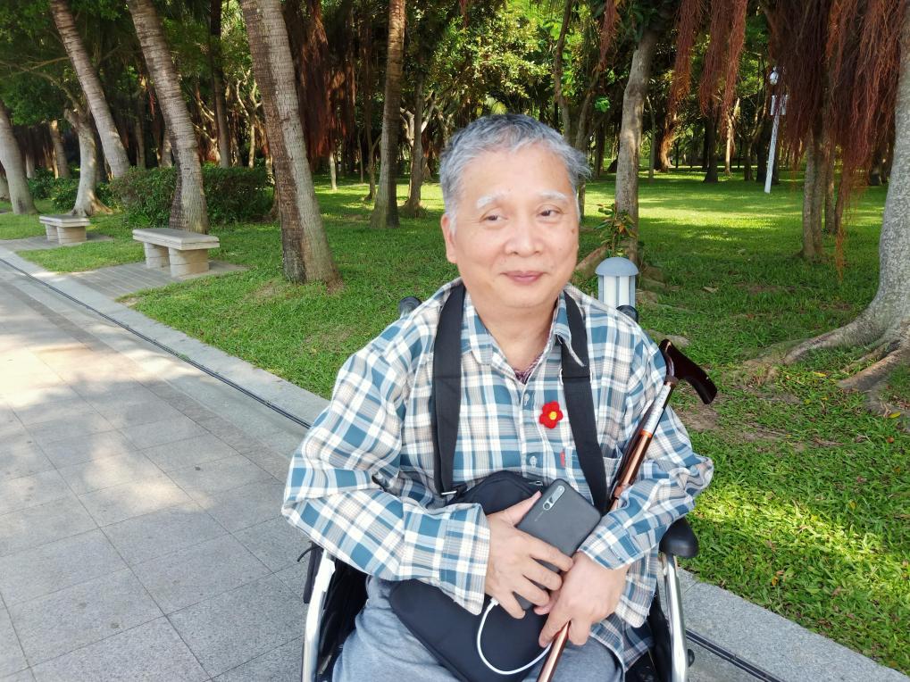 轮椅上的行善者梁永宁。