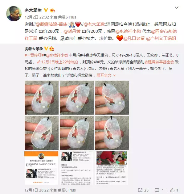 “老大笨象”为建辉基金会“支持困窘的行善老人”项目发起微博义拍。