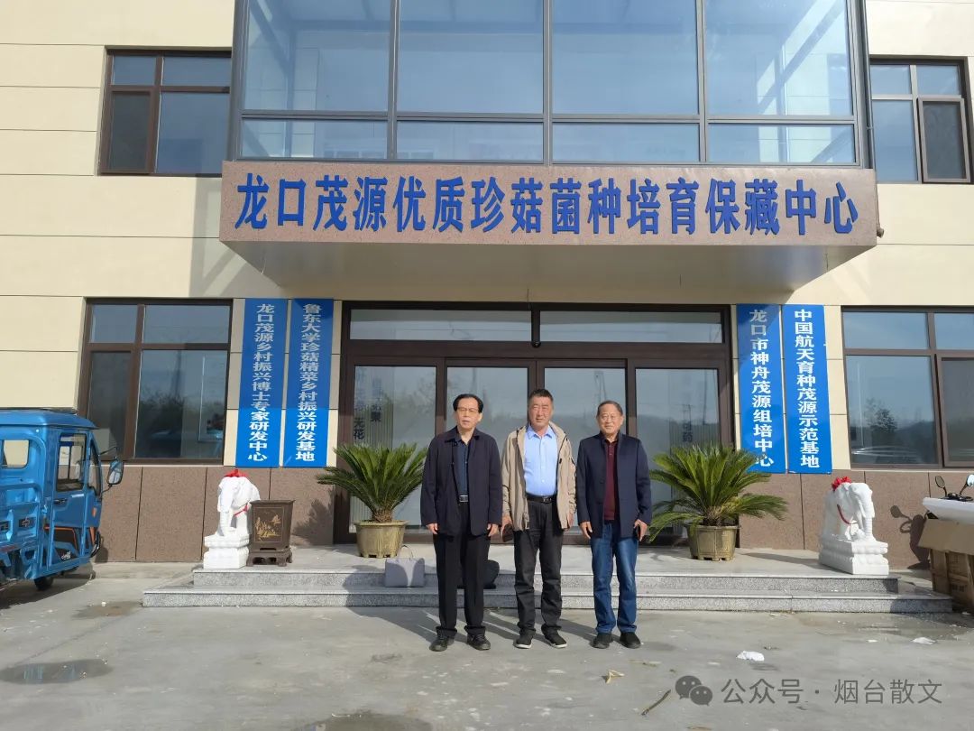 作者(左一)与茂源果蔬合作社总经理吴金海(中间)、烟台市散文学会名誉会长綦国瑞合影
