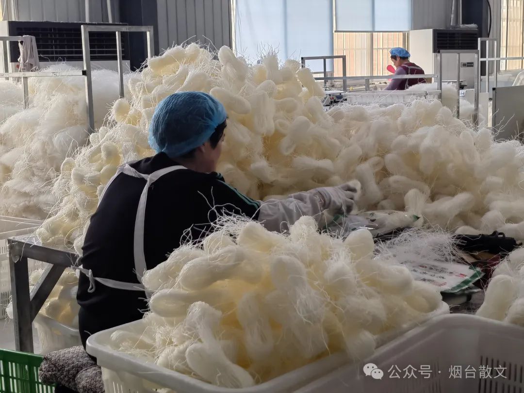在刘书记的引导下,我们来到了一处代包装粉丝的加工车间,约有八九百平方米,几十名女工在不停地忙碌着,一张张工作台上堆满了已分成小捆包装的粉丝。一位有着十多年工龄的中年女工姜伟华笑容满面地说:“以前我跑到招远去上班,风里来,雨里去。入驻新村后,从家里到车间不到五分钟,既方便照顾老人孩子,每月又能收入4000多元,家里的日常花销都不用愁了。平日想买点什么,自己说了算。”听到这硬气的话语,伙伴们也跟她一起“嘎嗄”地笑了起来。
