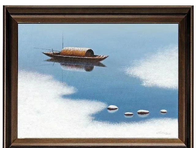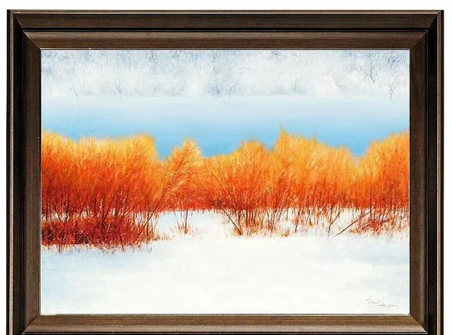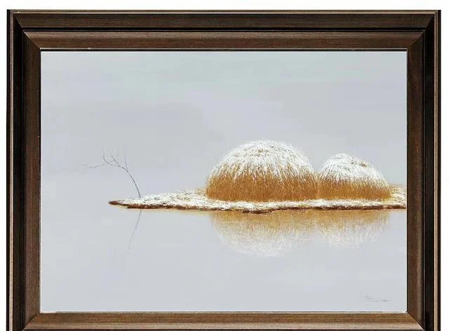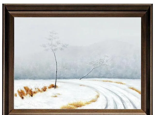 马刚的“冬景”油画具有一种特殊效果,眼睛看到画面,却直通心灵,看了还想一直看下去。不由得再次想起何弘的评价“当你的心灵融进这个宁静的世界之后,你也许会在这棵树、这只船中洞见伟大,把自已的生命延伸到宇宙生命的最深渊源。禅,也许就在这里出现。”
