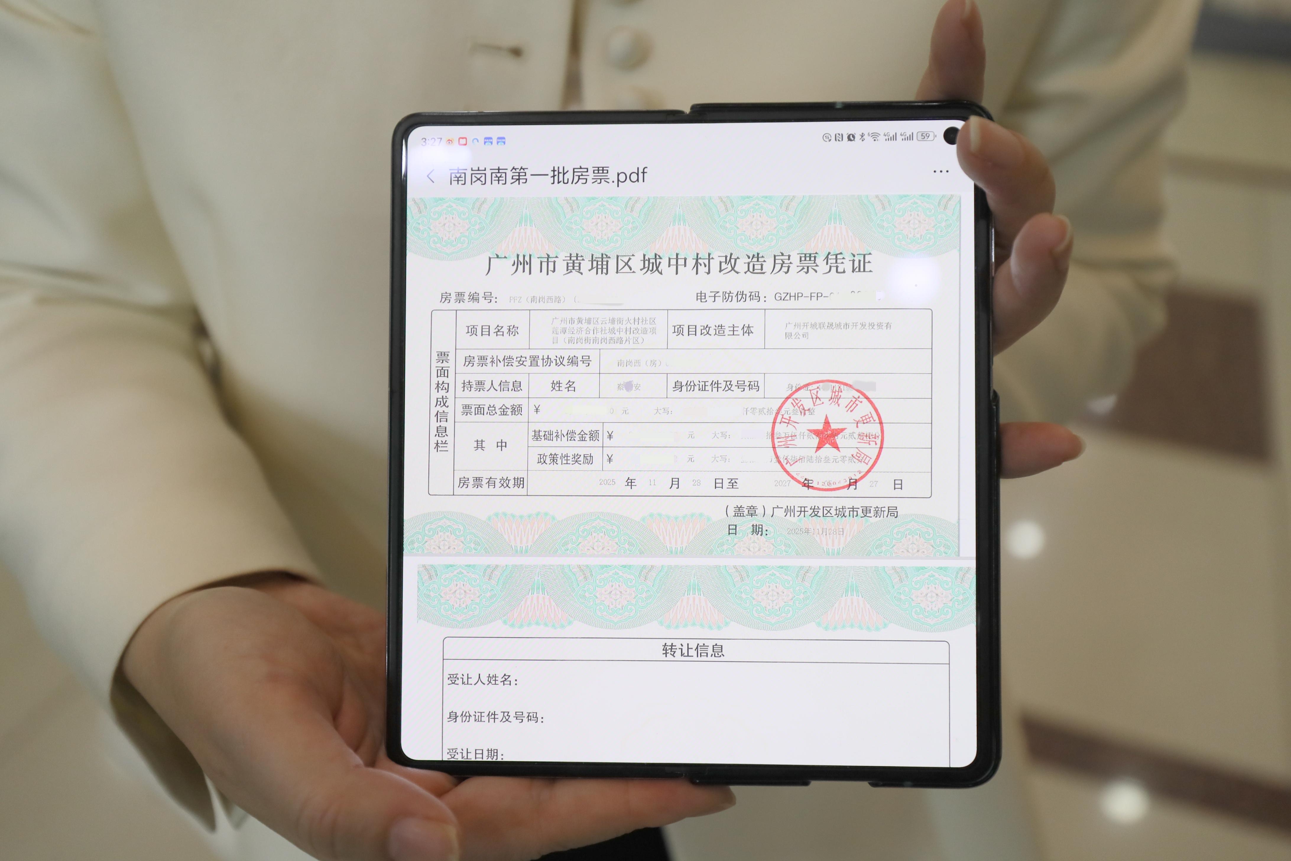 黄埔区南岗街街道办副主任刘伟介绍,自房票工作启动以来,街道层面提供的“一站式服务”成效显著,短短一个月内已推动签约约600套,对应价值超11亿元,南岗西路片区项目从11月28日核发第一批发票后的2天内第一批房票居民已完成网签。相比以往依赖回迁房建设的漫长周期,房票政策的核心优势在于“让老百姓很快拿到自己的房子”,极大缩短了安置等待时间。