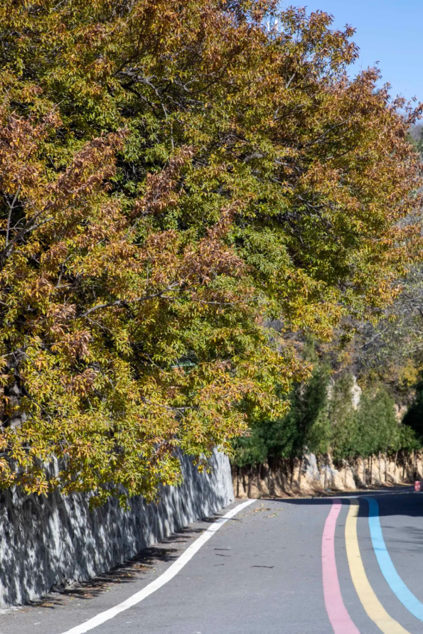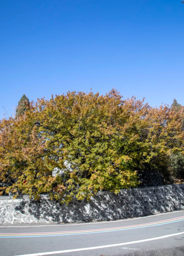 “我们这儿原名三树岭,就是因为山顶这三棵千年古树。”景区工作人员李老师一早就在山脚等候,言语间透着山里人的淳朴,“你们要是早来半个月就好了,那会儿漫山红叶,层林尽染,美得很!”