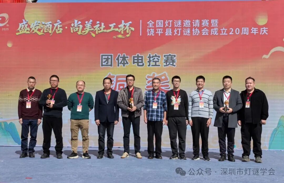 ▲2025年12月27日-12月28日,“盛发酒店·尚美社工杯”全国灯谜邀请赛暨饶平县灯谜协会成立20周年庆典活动在饶平举办,深圳市灯谜学会庄毓添、陈培楷、王楷波、陈煜、姚泽彬参会。在个人笔猜赛中,王楷波、陈培楷获优胜奖;在团体电控赛中,由庄毓添、陈培楷、姚泽彬所组成的深圳队获三等奖;在命题创作赛中,王楷波获奖。