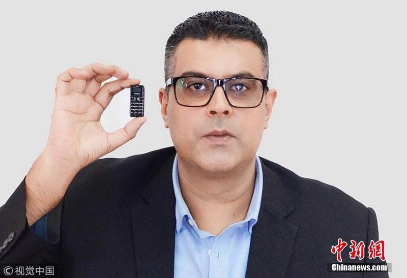 近日,作为世界上最小的工作电话,Zanco tiny t1的长度仅为46.7mm,屏幕长12.5mm,比硬币还轻,可轻松塞入牛仔裤小表兜里。人们始终无法相信它是真的。图片来源:视觉中国