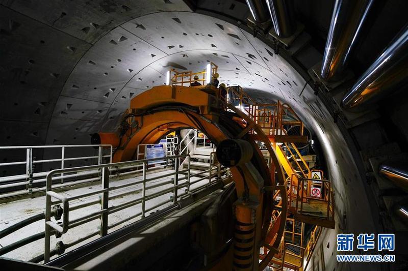 4月25日,中国中铁隧道集团的工人在京沈高铁望京隧道施工。