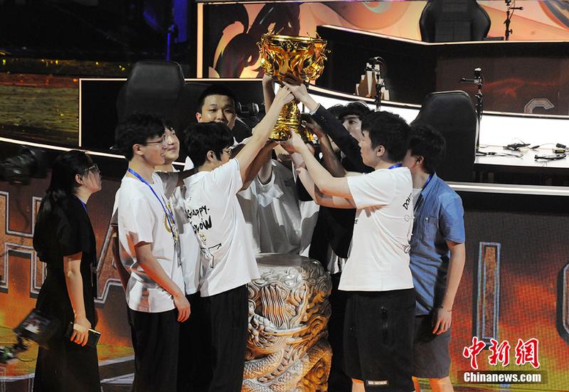 本次冠军杯采用了BO7(7局4胜)单败制淘汰赛的赛制,8月1日-8月11日,来自六大预选赛赛区的七支队伍与KPL九支劲旅将划分成四个区进行捉对厮杀。最终,来自KPL的战队eStarPro与QGhappy技高一筹,挺进总决赛。最终QGhappy成功卫冕,亲手捧起王者荣耀冠军杯国际邀请赛总冠军奖杯。中新网记者 翟璐 摄