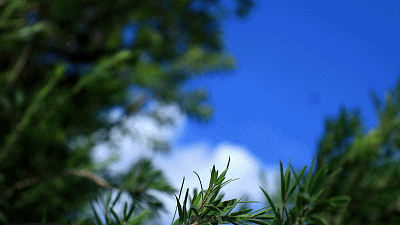 天空蓝得动人心魄,底下的植物欣欣向荣。