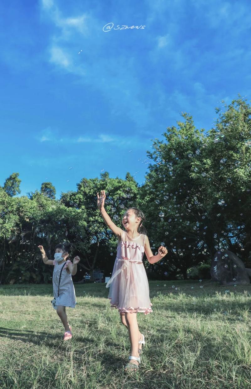 无忧无虑的孩子们牵扯着风筝线阔步奔跑,结伴成群追逐着七彩泡泡,欢声笑语就在耳边萦绕。