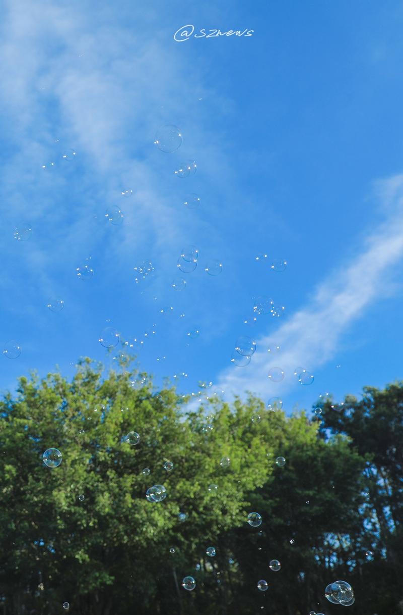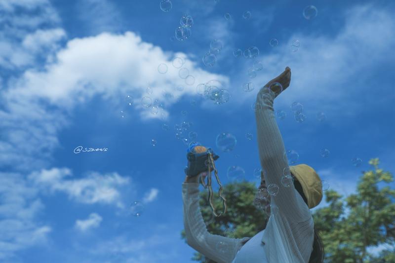 就让我们一起用五彩缤纷的泡泡,去跟天空打个招呼吧。
