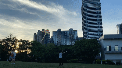 眼前明媚的蓝天,轻抚的夏风,还有爸爸妈妈的陪伴,都是属于夏天的美好记忆。