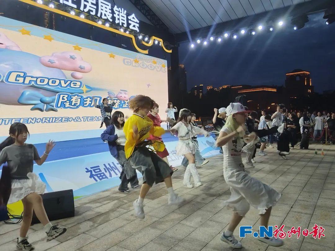 夜晚,伴着闽江微风,现场不仅可以逛房源、品美食、看演出,主舞台区域还设置了有奖互动,参与互动,就有机会获得精美礼品。