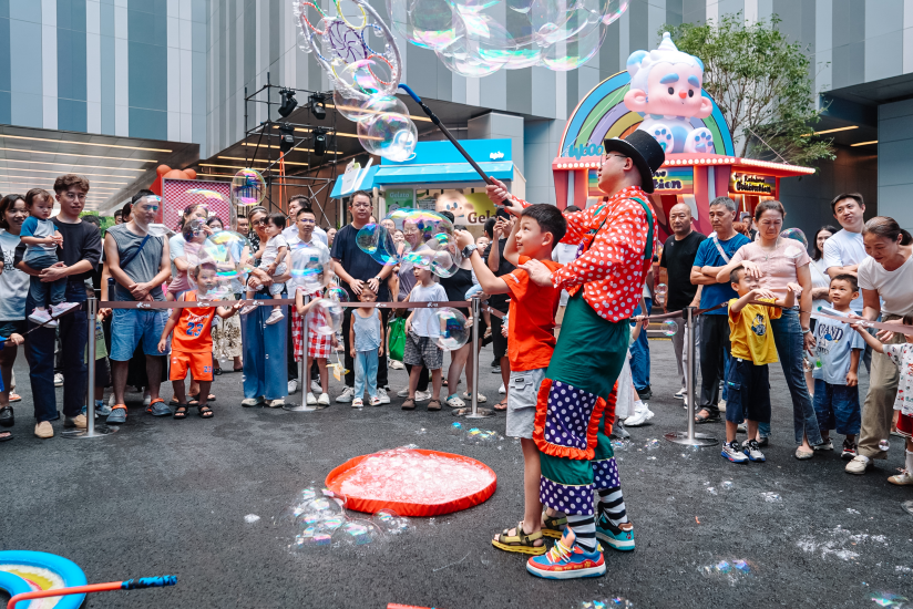 十字街作为深圳大悦城中轴线上的潮流高地,开业凭借7个顶流IP快闪店迅速成为深圳年轻客群的潮流风暴眼。不仅集结了迪士尼皮克斯玩具总动员快闪店·玩心商店、HIDDEN WOOO旗下HUROBO快闪店、SLLO幽灵猫主题快闪店、卡皮巴拉豚豚崽烘焙坊(主题首店)、夏日超开“新”歪瓜出品潮玩集合主题店、大美术馆、Wood buddy我的巴迪TV Box限定店,融合独特快闪装置、互动打卡及限定周边发售,精准狙击深圳青年审美偏好。开业当天唯锋家族男团、西多士乐团、翻身乐队激情开唱,KPOP随舞联动热辣开跳,现场人气爆棚。