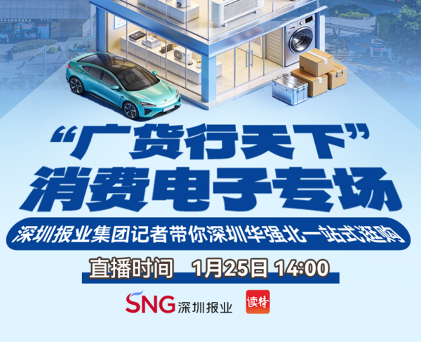 1月25日,“广货行天下”春季行动消费电子专场促销活动将在深圳市华强电子世界2店广场盛大开启。50家广东消费电子标杆企业将现场直播带货,超10家头部电商平台鼎力加持,OPPO、vivo、荣耀等知名企业还将走进3个社区开展专场促销,还有系列线下促销、成果展等活动……14:00,锁定读特客户端直播间,读特x英文日报x香港商报三路记者点位接力,带你一站式解锁“广东造”硬核实力,把高性价比消费电子好物带回家。