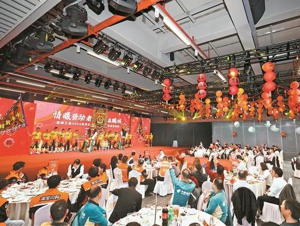 2月5日,2026年深圳工会“情暖劳动者 欢乐在鹏城”关爱一线职工新春年夜饭活动在罗湖区水贝壹号温暖开宴。