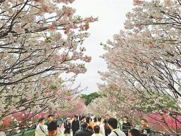 以“春暖龙华·樱舞非遗”为主题的2026观澜湖第十届樱花节正处花期中段,千米花海正值最佳观赏期;火遍全球的“非遗英歌舞”也将持续至3月3日(正月十五元宵节),为市民延续新春的喜庆氛围。