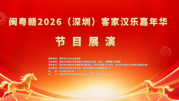 1月11日上午,由深圳市公共文化促进会指导,闽粤赣汉乐联盟与深圳市龙岗区布吉街道公共服务办公室(文体)联合主办的“闽粤赣2026(深圳)客家汉乐嘉年华”在深圳市龙岗区布吉街道文体中心隆重举行。