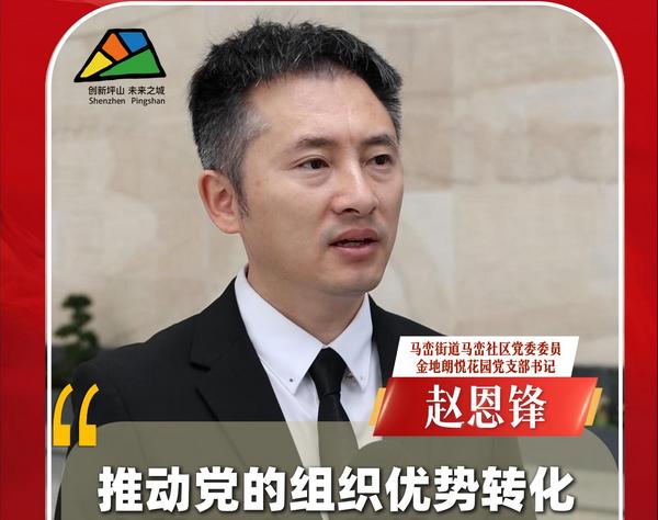 马峦社区党委委员、金地朗悦花园党支部书记赵恩锋在接受采访时表示:“推动党的组织优势转化为基层治理效能,优化党群服务和特色发展。”