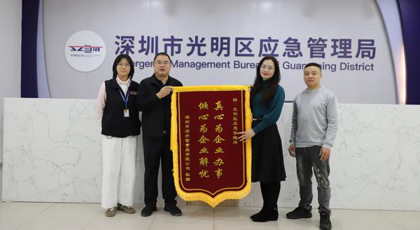 2026年2月3日,深圳市深手信食品有限公司向光明区应急管理局赠送锦旗,赞扬该局“倾心为企业解忧、真心为企业办事”。