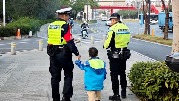 温情二十分钟!光明交警街头助走失幼童回家