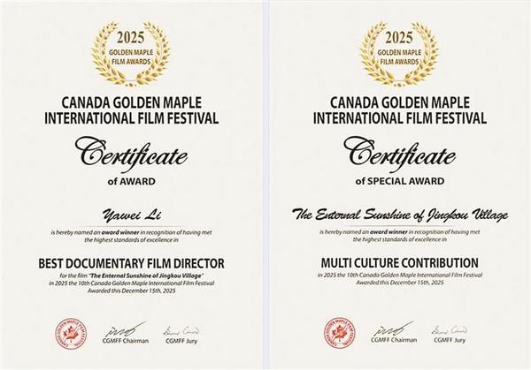 《迳口村的暖阳》荣获加拿大金枫叶国际电影节“最佳纪录片导演”“多元文化贡献”两项国际大奖。