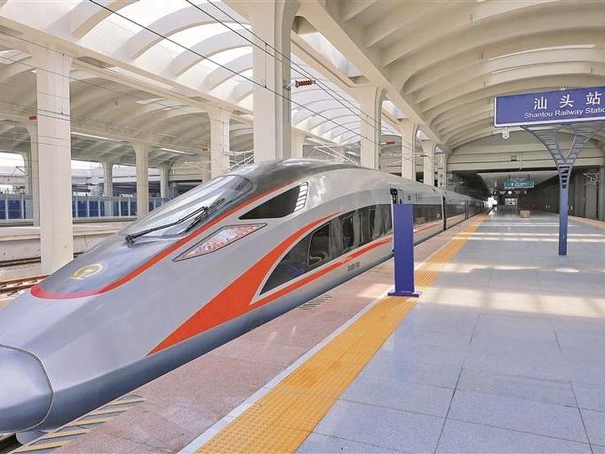 12月11日,G8483次复兴号试验动车组从汕头站缓缓驶出,沿着汕汕高铁驶向汕头南站,标志着汕汕高铁汕头至汕头南段进入按图行车试验阶段。
